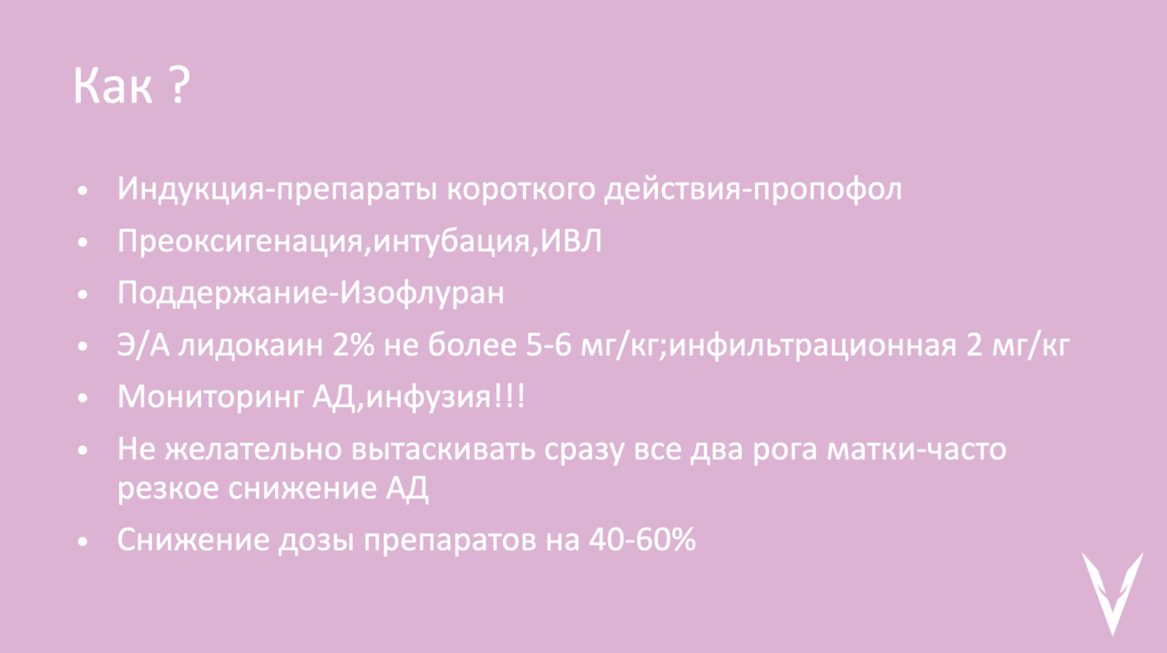 • Какие препараты можно использовать при кесарево • Какие препараты нельзя использовать при кесарево • Нюансы мониторинга • Как правильно реанимировать новорожденных • Что делать если не получилась эпидуральная анестезия