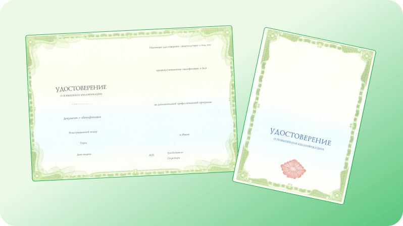 После прохождения курса у вас есть возможность получить удостоверение о повышении квалификации установленного образца