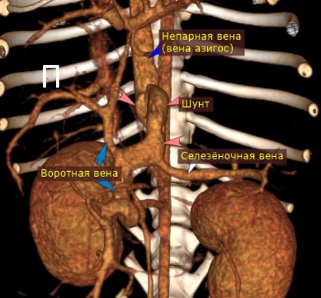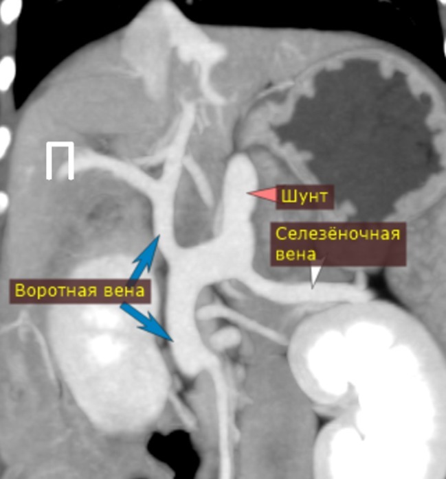 По КТ подтвердилось наличие внепечёночного спленоазигонального шунта.
